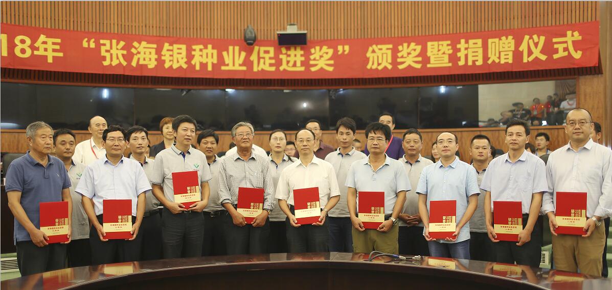 會上,基金會副理事長、“張海銀種業促進獎”評審委員會李立秋主任宣讀2018“張海銀種業促進獎”獲得者名單。特別獎獲得者1名:安徽荃銀高科種業股份有限公司水稻科研創新團隊;一等獎獲得者2名:中國水稻研究所所長程式華,河南豐德康種業有限公司董事長兼首席育種家鄭天存;二等獎獲得者4名:遼寧省農科院創新中心副主任陸曉春,湖南省種子協會秘書長閔軍,廣西賀州市農業科學院研究員蒙秀鋒,河北河間市國欣農村技術服務總會會長盧懷玉;三等獎獲得者2名:山東中農天泰種業有限公司總經理劉寧,安徽蚌埠永生農業科技有限公司總經理王其斌;特別獎獎勵人民幣10萬元,一、二、三等獎分別獎勵人民幣8萬元、5萬元、3萬元,共計52萬元。本次8人1團隊獲獎者中是在水稻、小麥、玉米、棉花、甜葉菊等科研領域開拓創新、作出貢獻的優秀種業人才。