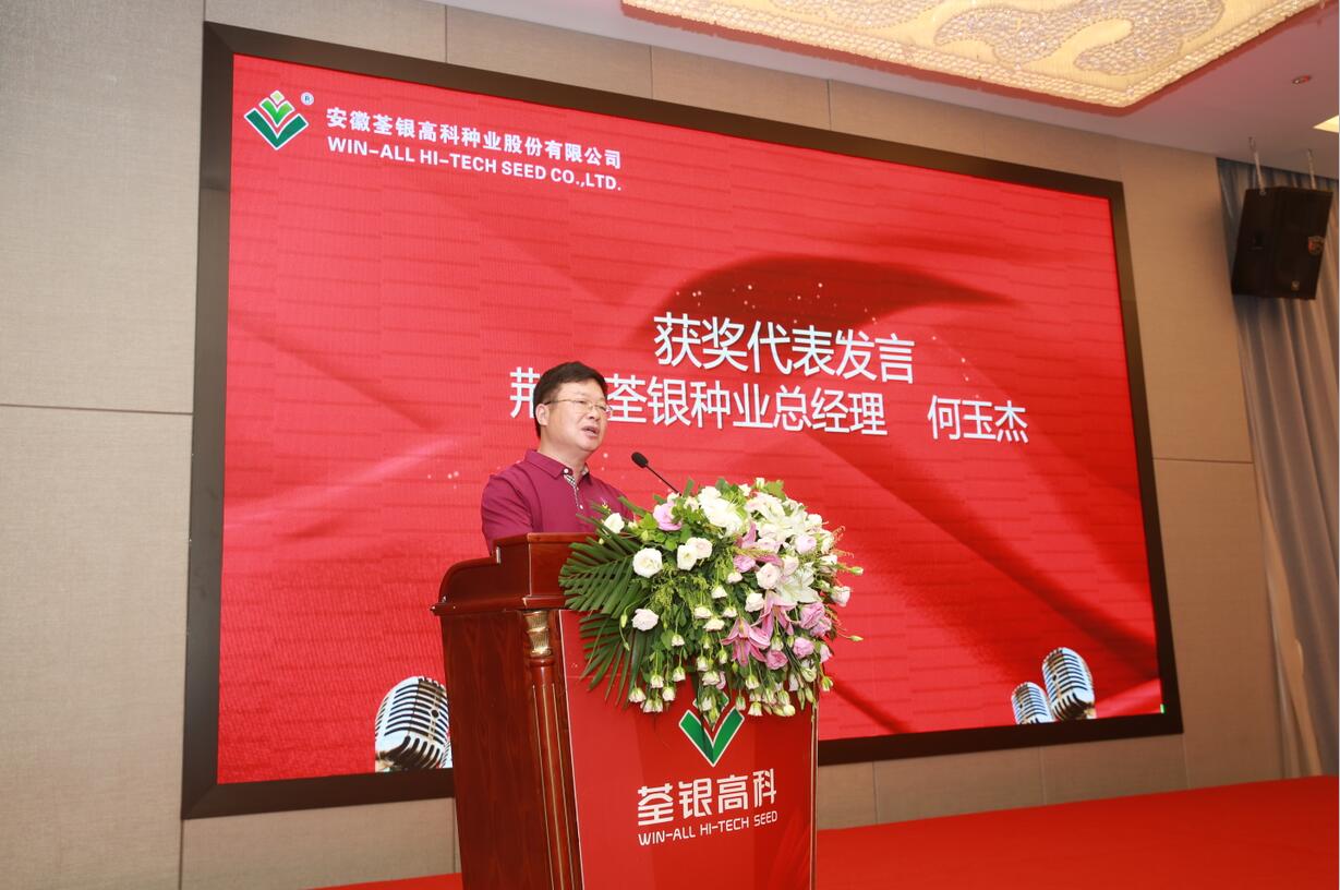 ??? 荃銀高科董事、常務副總經理、基金會副理事長王玉林講話中強調,面對種業發展新形勢,我們要搶抓種業機遇,實現可持續健康發展,并從信心、激情、創新、認識、方法等方面為大家解讀荃銀高科營銷理念,希望與各位合作伙伴共同攜手,實現共贏。