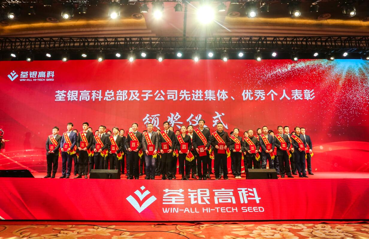 ? ? “我們自信前行,只爭朝夕,不負韶華,為荃銀發展而努力奮斗”!會議對荃銀高科總部及在肥子公司2019年度業績突出的先進集體、愛崗敬業的優秀個人進行表彰頒獎,希望他們珍惜榮譽,再創佳績,并號召廣大員工以先進為榜樣,增強責任感、使命感,自強不息,開拓進取。